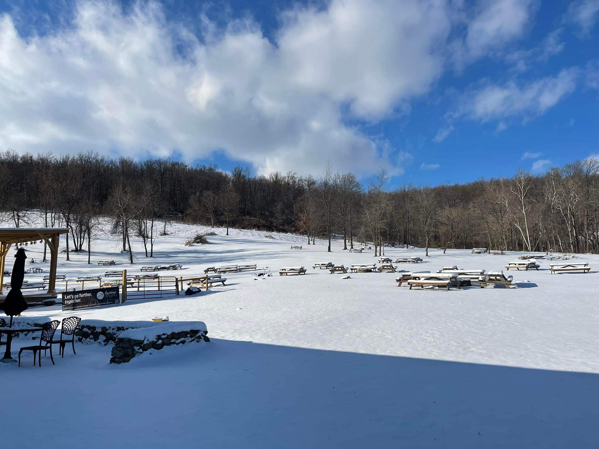 Lots of beer and snow to enjoy! Our gravel parking is a little slick but we’re open and betting you will want to warm up with our just released Oat And In The Way Oatmeal stout!